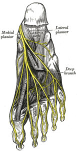 この神経は、筋への運動出力に強く関与する枝として知られています。一方で、踵骨骨膜や長足底靱帯などへの感覚枝を含むとする報告もあり、純粋な運動神経というより、運動枝としての性格が強い神経として捉えると理解しやすいです。