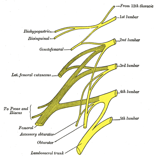 L1〜L4の脊髄神経前枝から構成され、大腿前面などの神経を形成します。